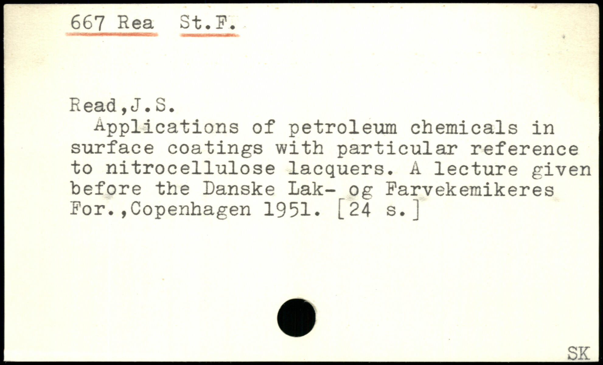 Applications of petroleum chemicals in surface coatings with particular reference to nitrocellulose lacquers. A lecture given before the Danske Lak- og Farvekemikeres For.