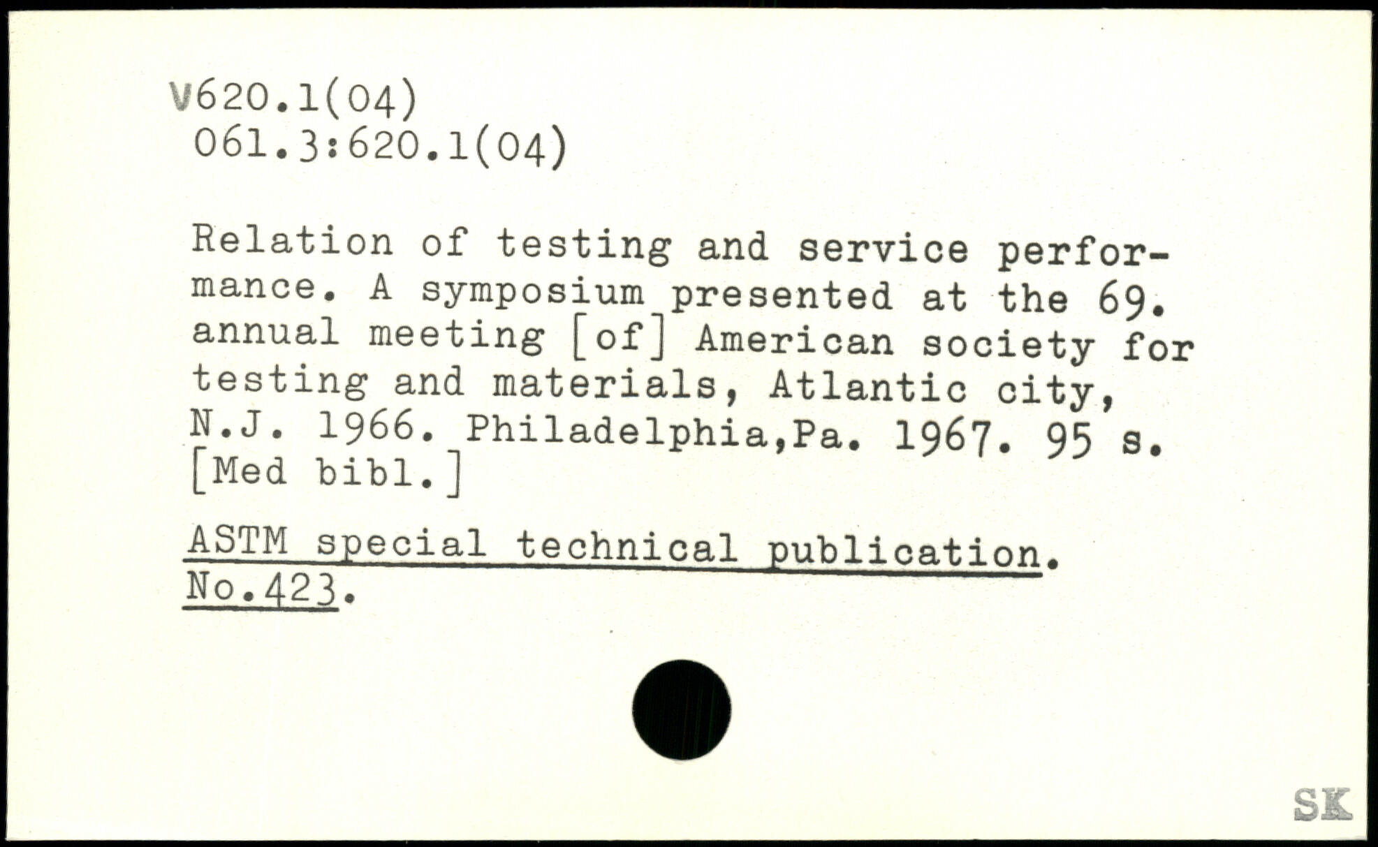 Relation of testing and service performance. A symposium presented at the 69. annual meeting [of] American society for testing and materials, Atlantic city, N.J. 1966. Philadelphia,Pa. 1967.