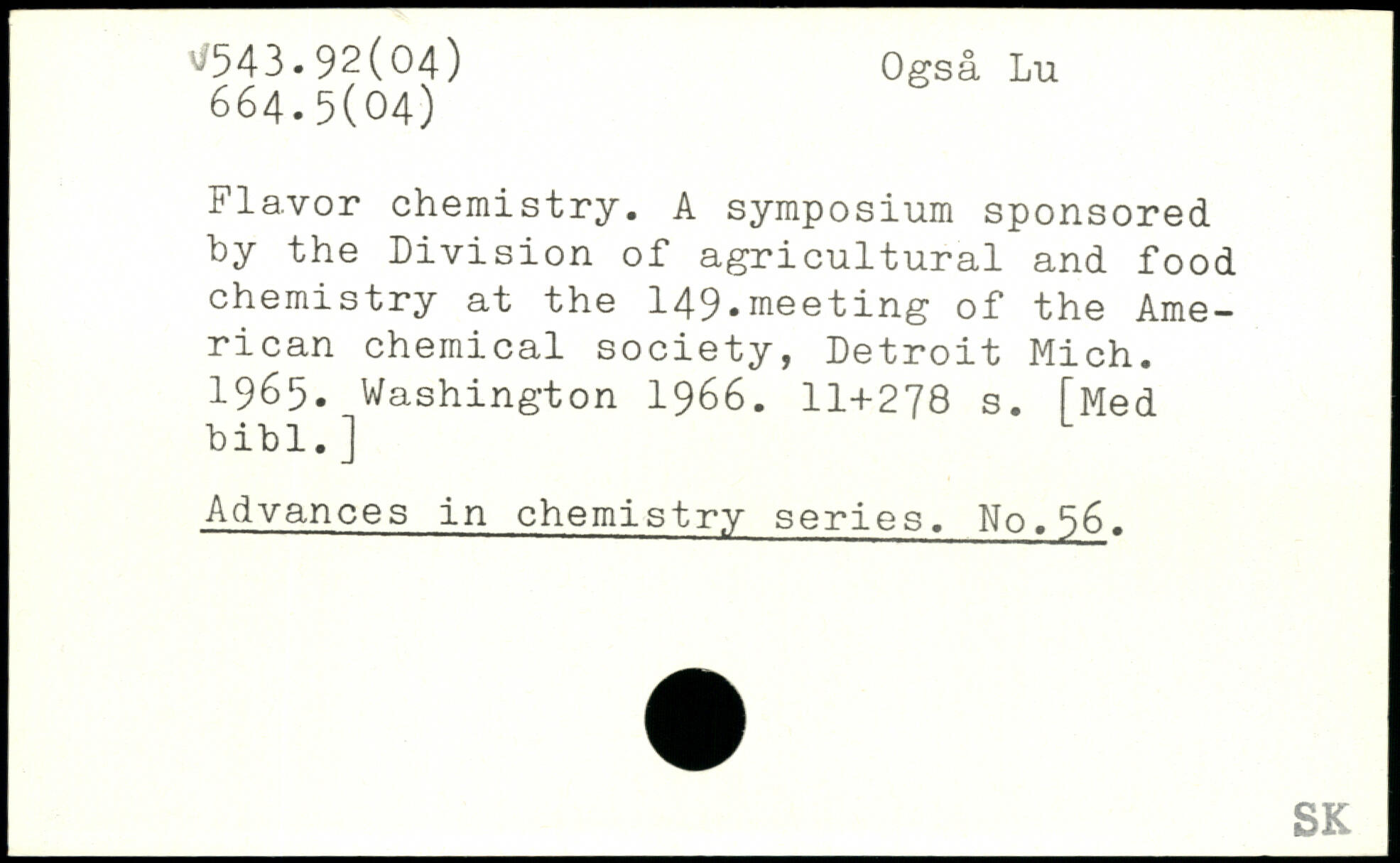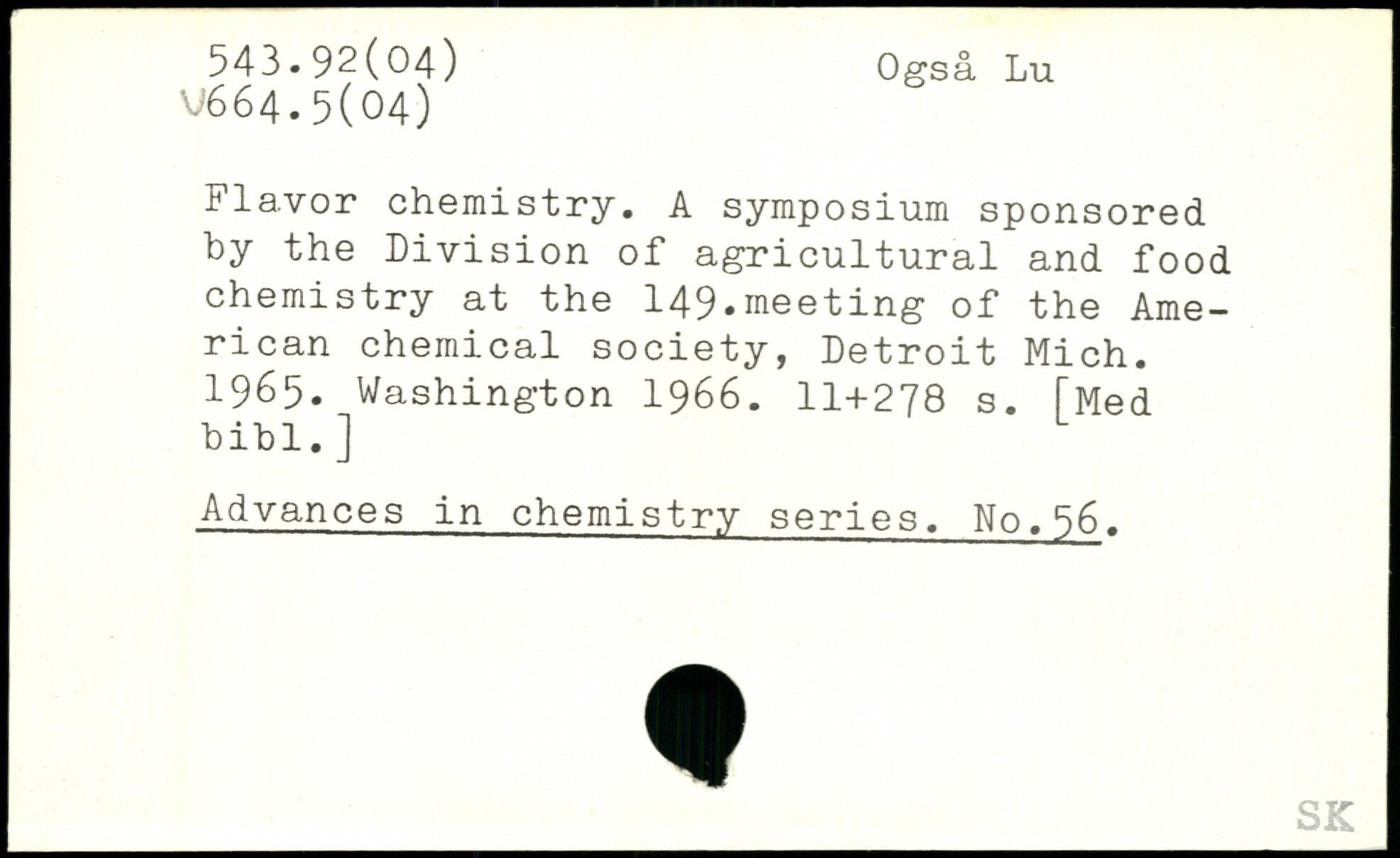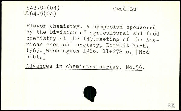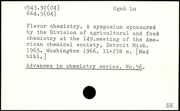 Flavor chemistry. A symposium sponsored by the Division of agricultural and food chemistry at the 149-meeting of the American chemical society, Detroit Mich. 1965.