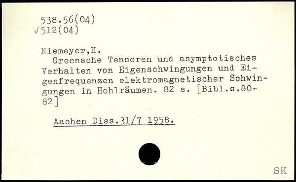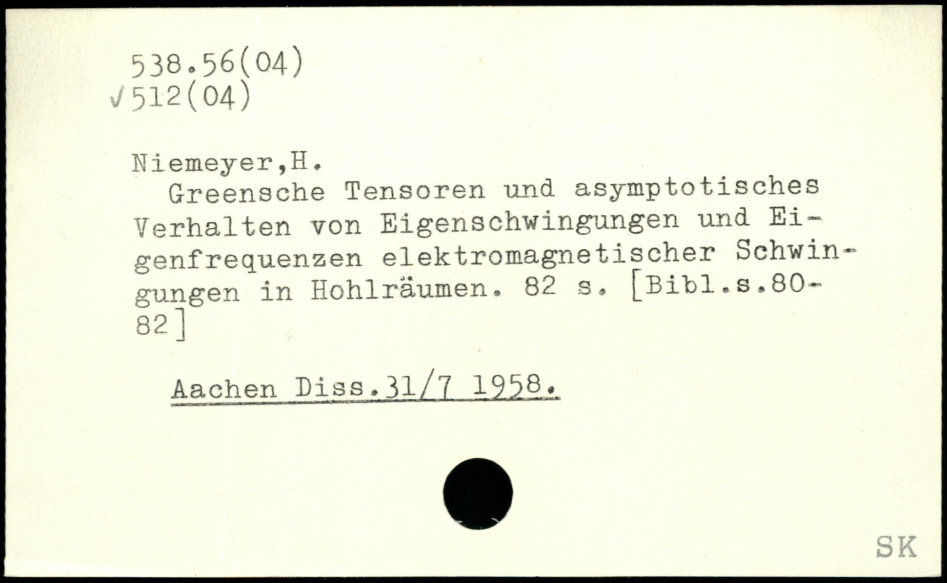 Greensche Tensoren und asymptotisches Verhalten von Eigenschwingungen und Eigenfrequenzen elektromagnetischer Schwingungen in Hohlräumen.