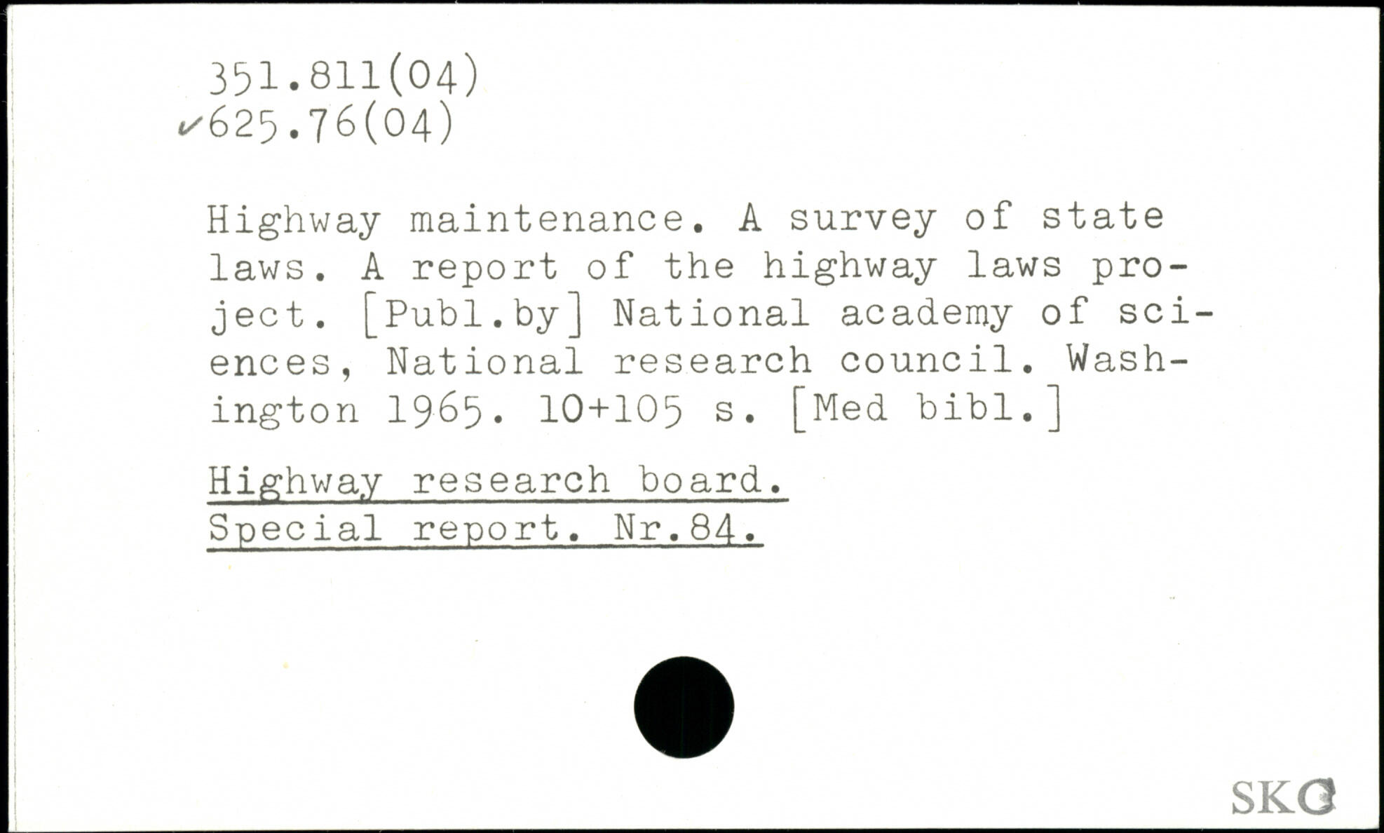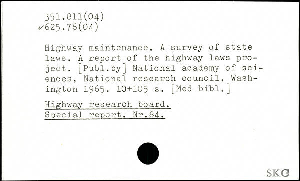 Highway maintenance. A survey of state laws. A report of the highway laws project.