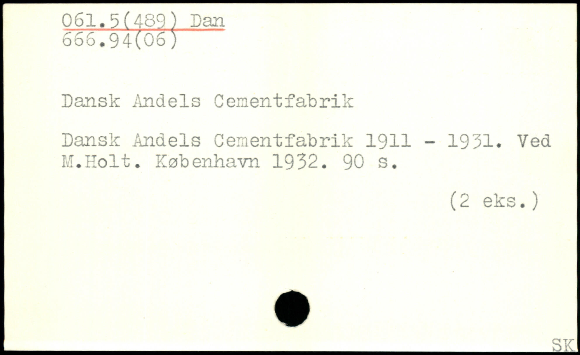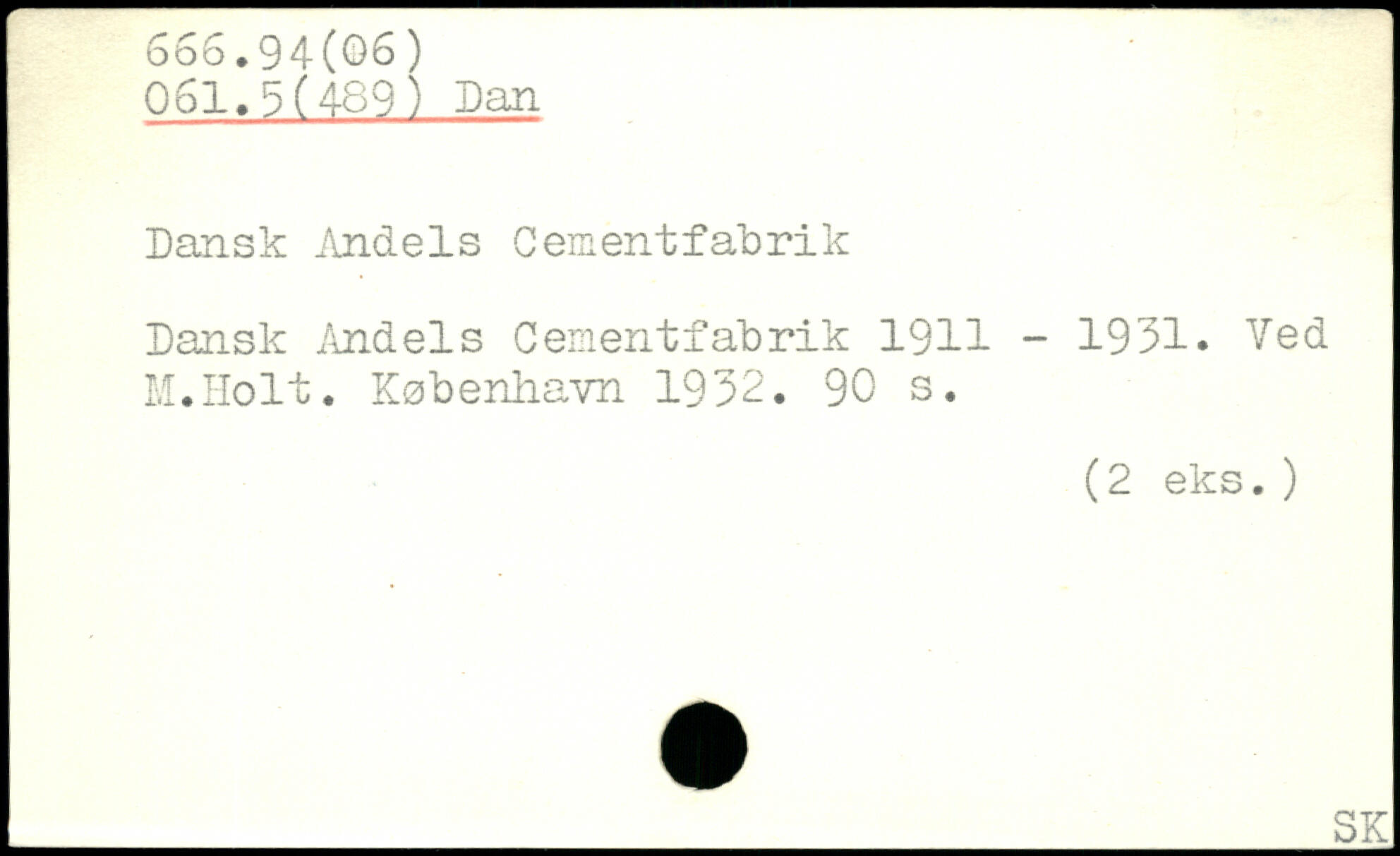 Dansk Andels Cementfabrik Dansk Andels Cementfabrik 1911 - 1931. Ved M.Holt.