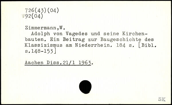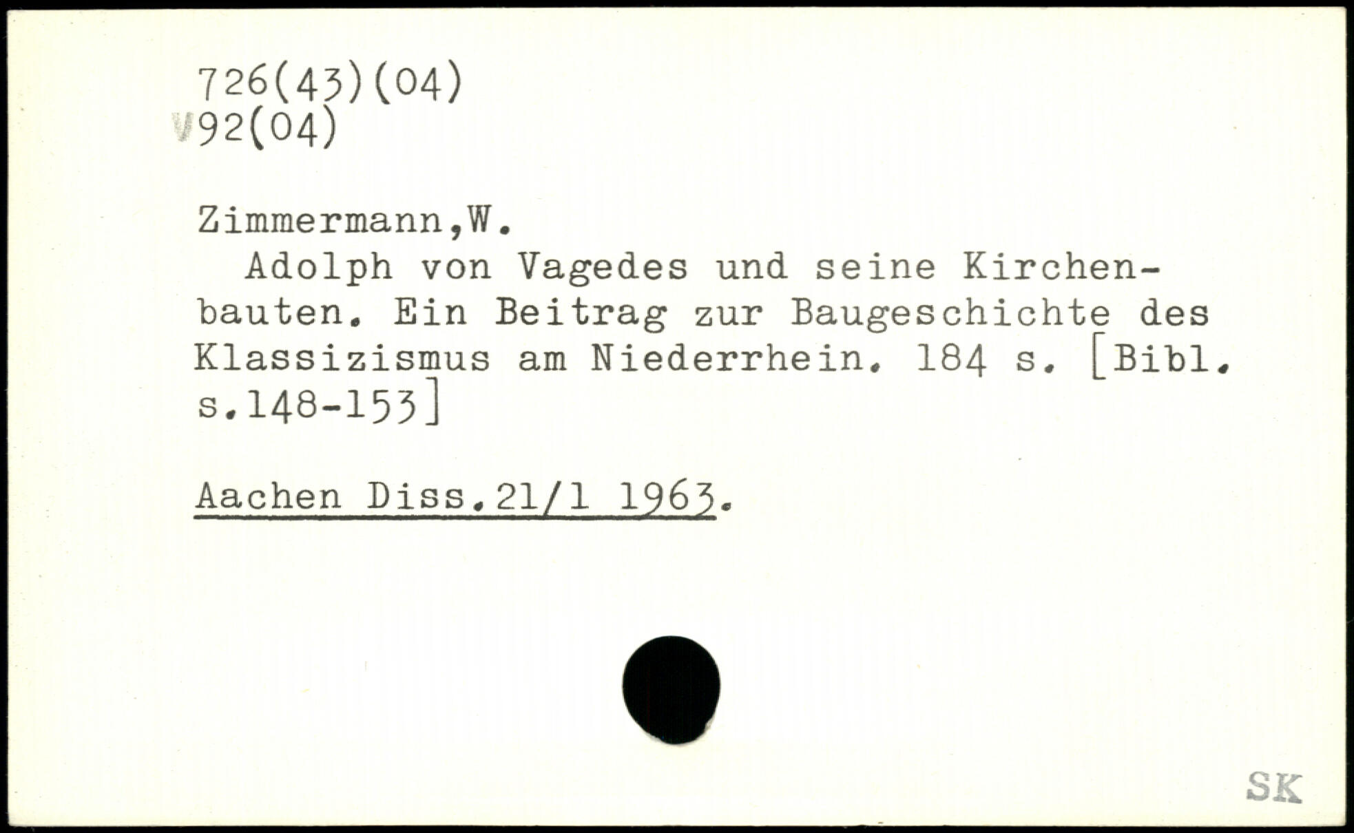 Adolph von Vagedes und seine Kirchenbauten, Ein Beitrag zur Baugeschichte des Klassizismus am Niederrhein.