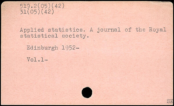 Applied statistics. A journal of the Royal statistical society. Edinburgh 1952- Vol.l-
