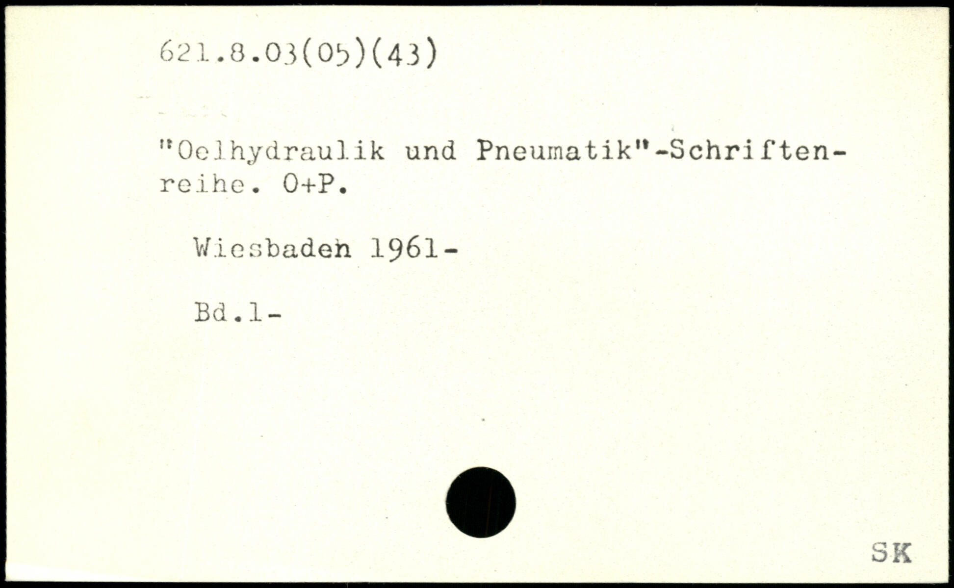 tl0oJ hydraulik und Pneumatik"-Schri ften- reihe. 0+P. Wiesbaden 1961-Bd.l-