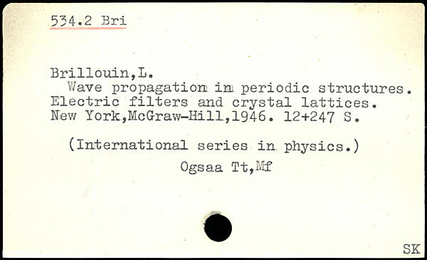 Wave propagation in periodic structures. Electric filters and crystal lattices.