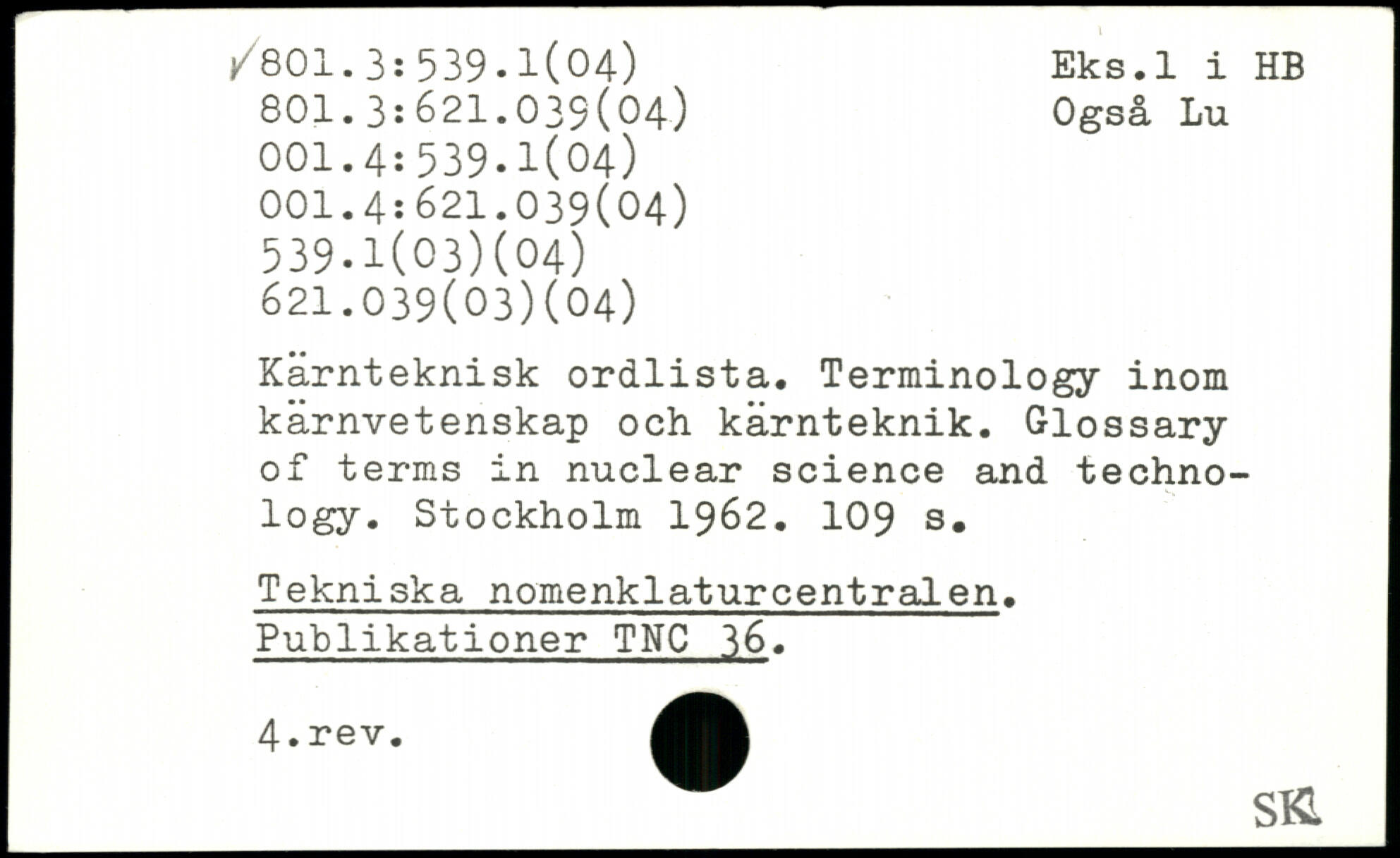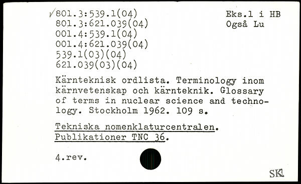 Kärnteknisk ordlista. Terminology inom kärnvetenskap och kärnteknik. Glossary of terms in nuclear science and technology.
