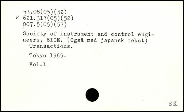 Society of instrument and control engineers, SICE. (Også med japansk tekst) Transactions.