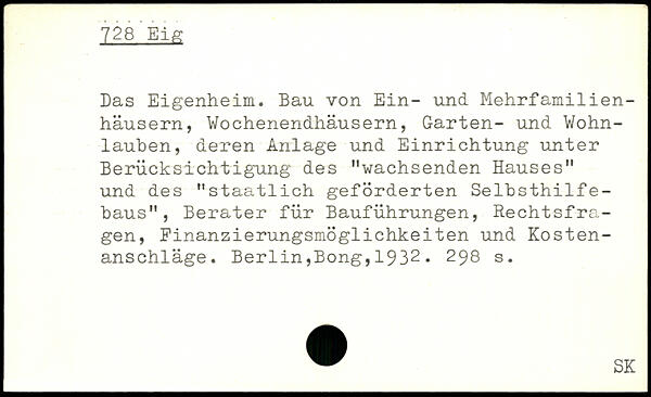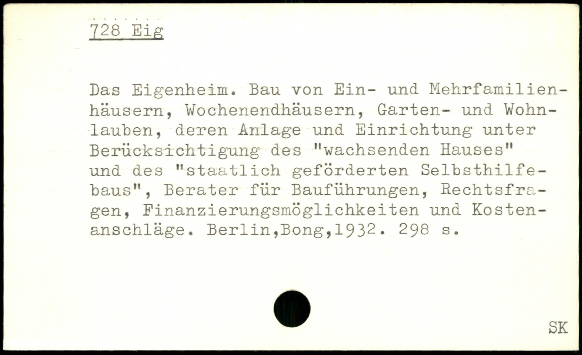 Das Eigenheim. Bau von Ein- und Mehrfamilienhäusern, Wochenendhäusern, Garten- und Wohnlauben, deren Anlage und Einrichtung unter Berücksichtigung des "wachsenden Hauses" und des "staatlich geförderten Selbsthilfebaus", Berater für Bauführungen, Rechtsfragen, Finanzierungsmöglichkeiten und Kostenanschläge.