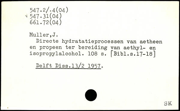 Directe hydratatieprocessen van aetheen en propeen ter bereiding van aethyl- en isopropylalcohol.