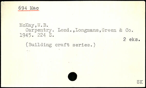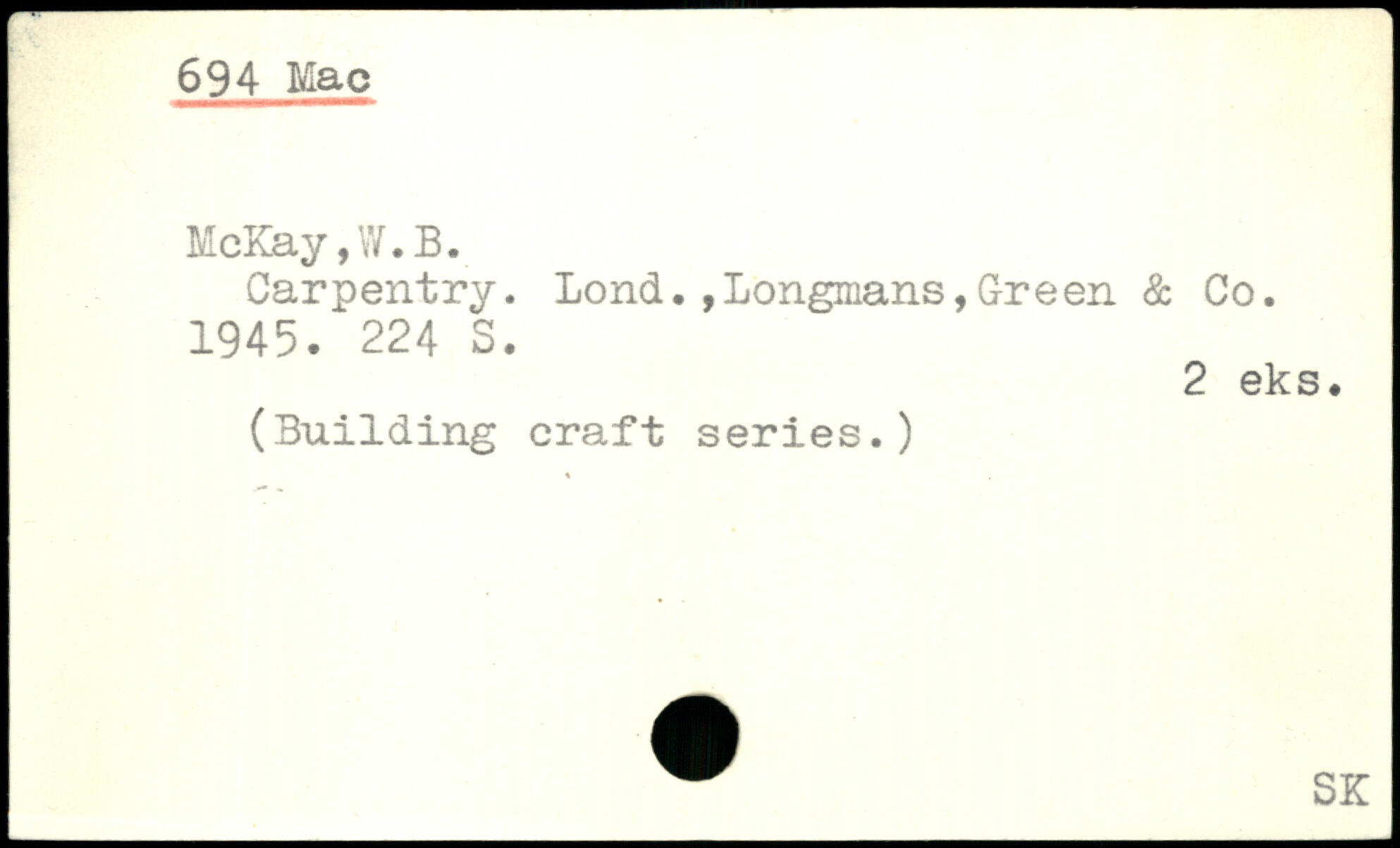 Carpentry. Bond.,Longmans,Green & Co. 1945.