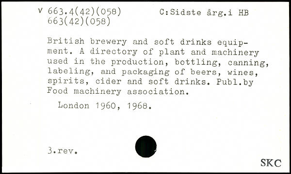 British brewery and soft drinks equipment. A directory of plant and machinery used in the production, bottling, canning, labeling, and packaging of beers, wines, spirits, cider and soft drinks.
