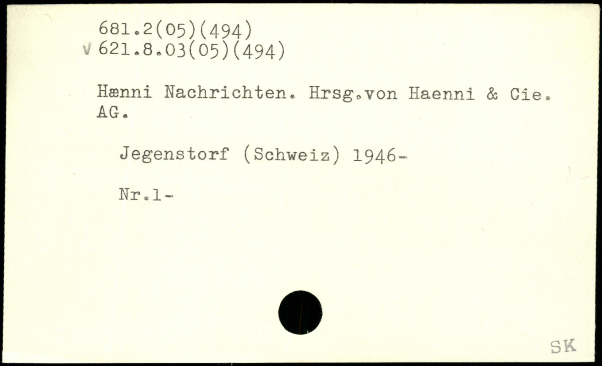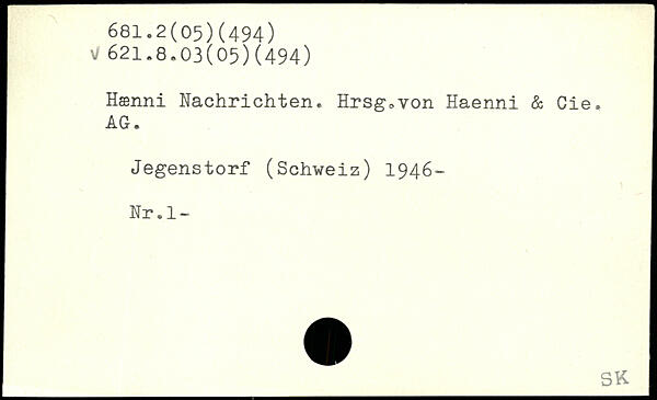 Heenni Nachrichten. Hrsg,von Haenni & Cie. AG. Jegenstorf (Schweiz) 1946-Nr.l-