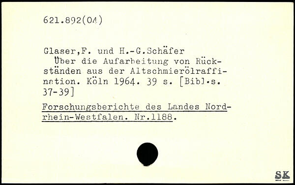über die Aufarbeitung von Rückständen aus der Altschmierölraffinition. Köln 19ö4.