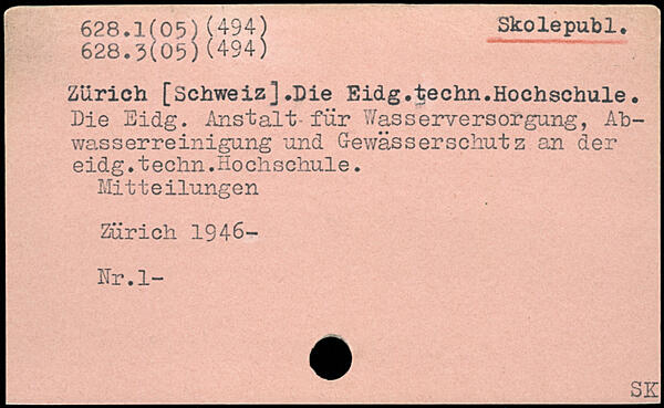 Zürich [Schweiz].Die Eidg.techn.Hochschule♦ Die Eidg. Anstalt-für Wasserversorgung, Abwasserreinigung und Gewässerschütz an der eidg.techn.Hochschule. Mitteilungen Zürich 1946- Hr.l-