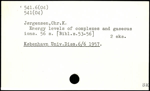 Jørgensen,Chr.K, Energy levels of complexes and gaseous ions.
