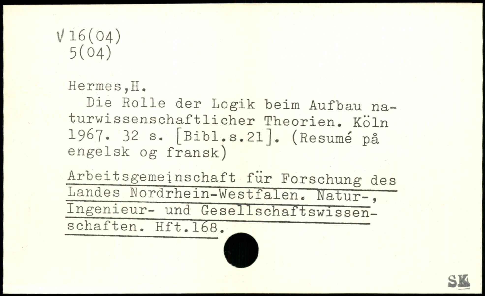 Die Rolle der Logik beim Aufbau naturwissenschaftlicher Theorien. Köln 19Ö7.
