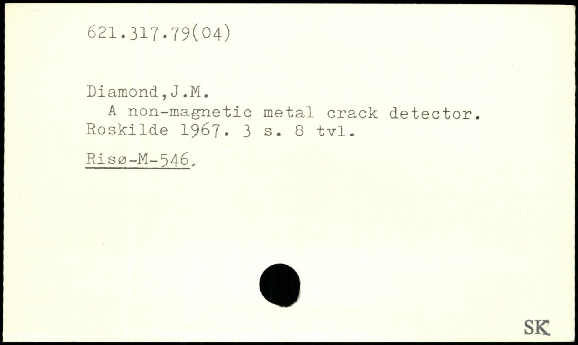 A non-magnetic metal crack detector. Roskilde 1967.