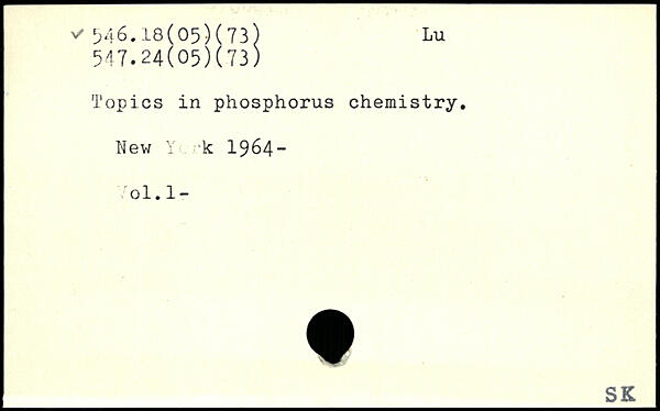 Topics in phosphorus chemistry. New Y- k 1964-ol.l-