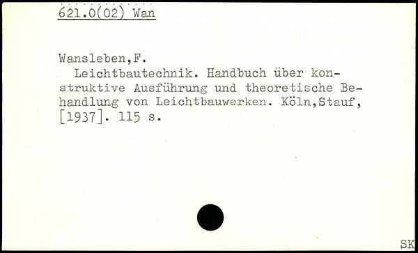 Leichtbautechnik. Handbuch über konstruktive Ausführung und theoretische Behandlung von Leichtbauwerken. Köln,Stauf,
