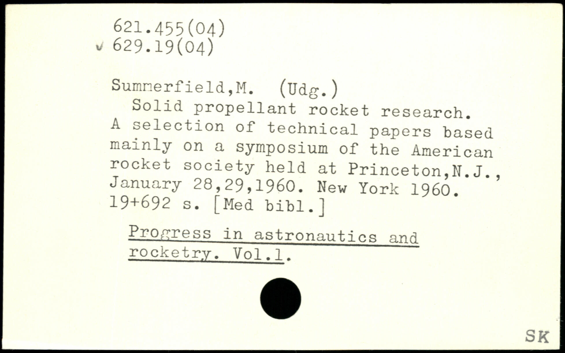 Solid propellant rocket research. A selection of technical papers based mainly on a symposium of the American rocket society held at Princeton,N.J. January 28,29,1960.