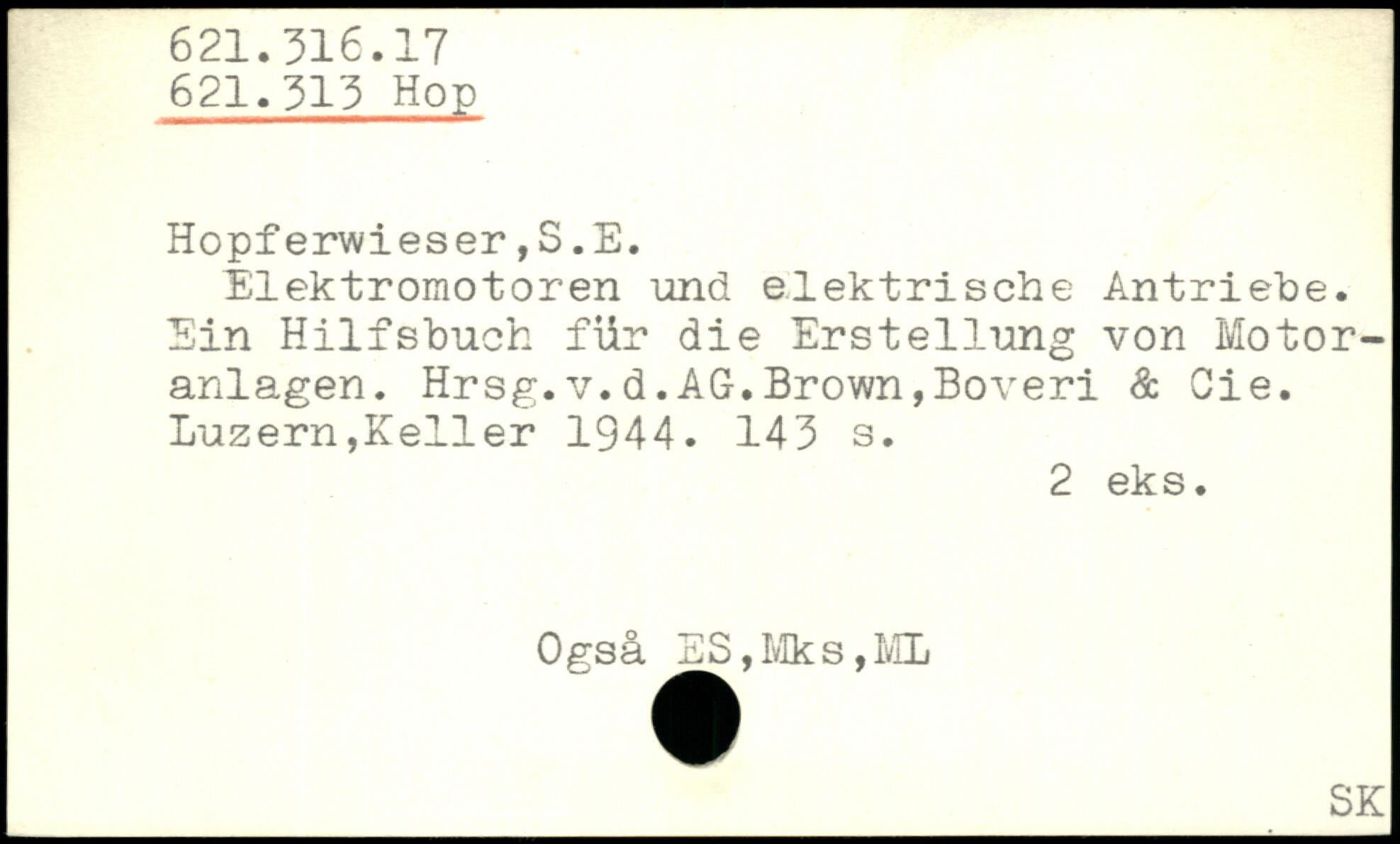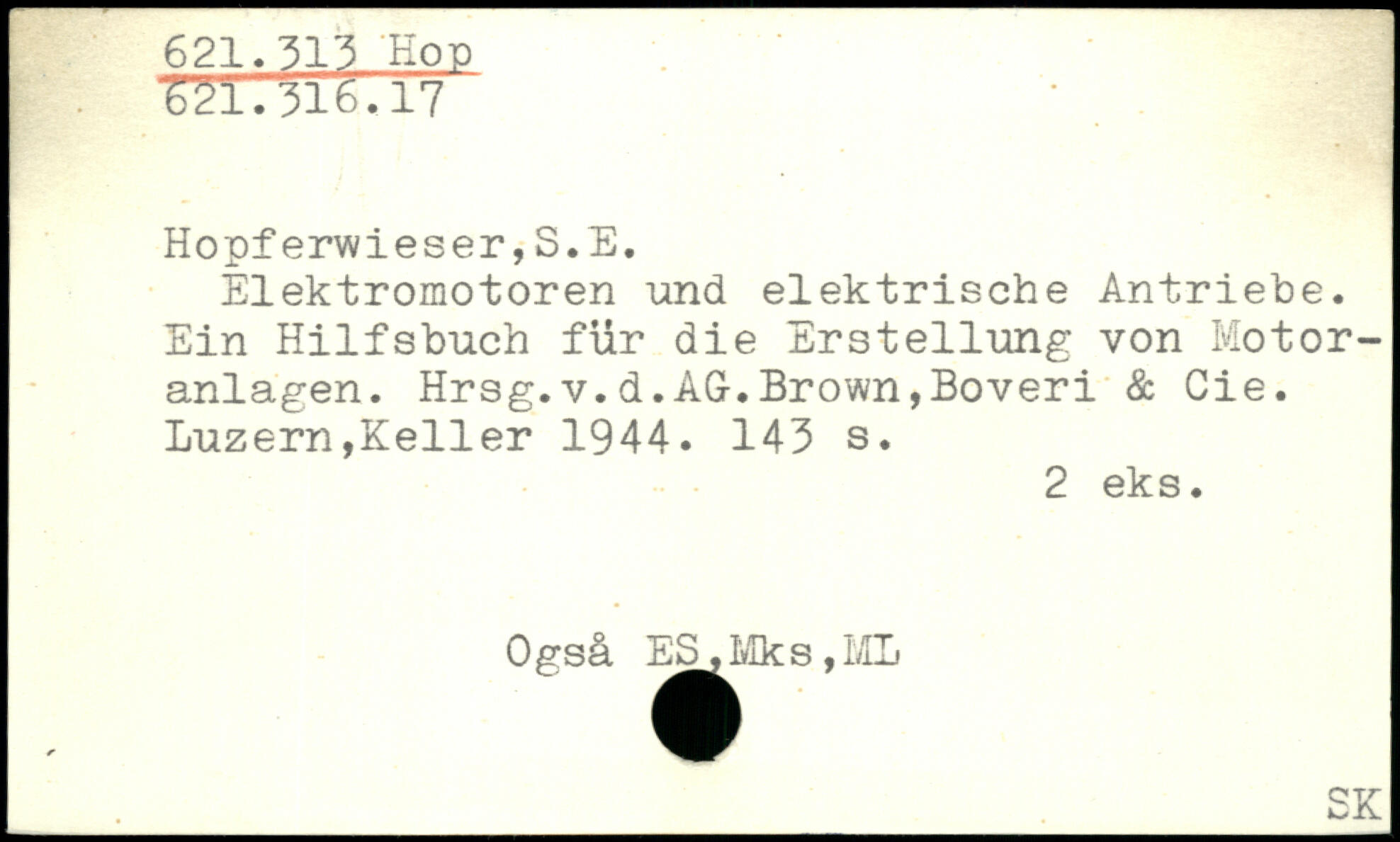 Elektromotoren und elektrische Antriebe. Ein Hilfsbuch für die Erstellung von Motoranlagen. Hrsg.v.d.AG.Brown,Boveri & Cie. Luzern,Keller 1944.