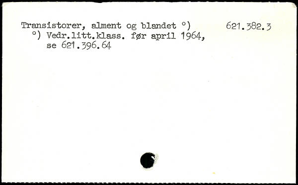 I Transistorer, alment og blandet .) 621.382.3 .) Vedr.litt.klass. før april 1964, se 62l.396.64-