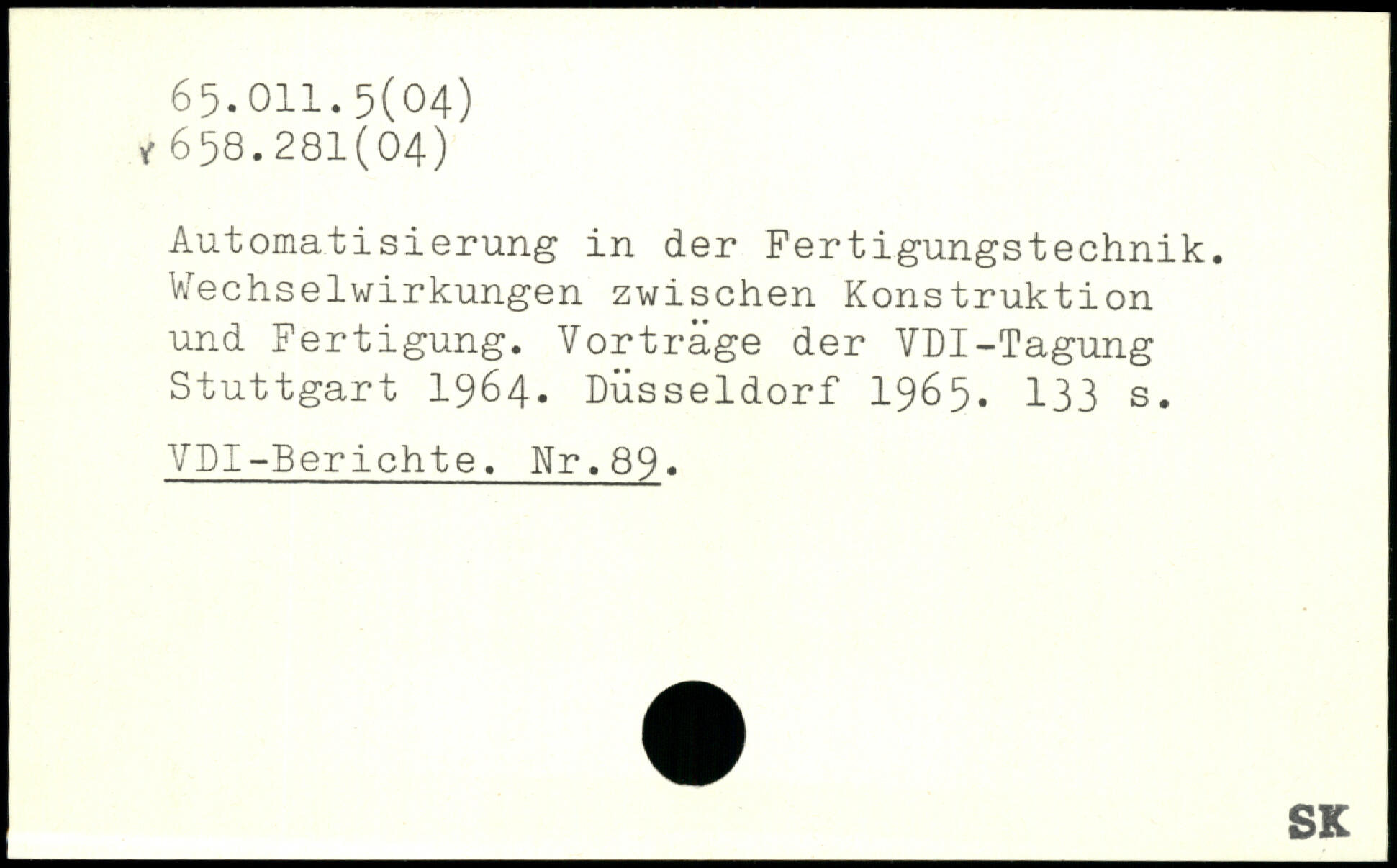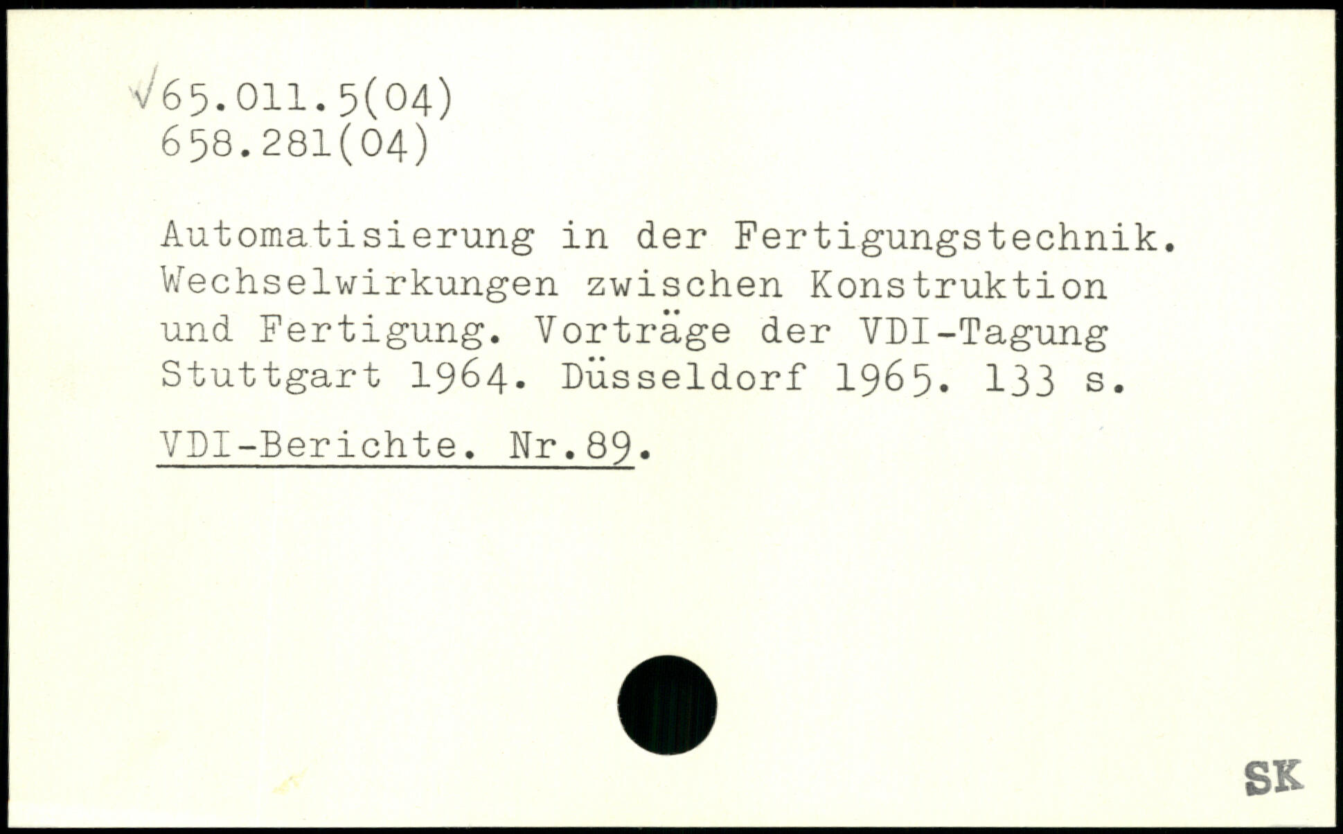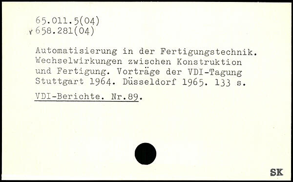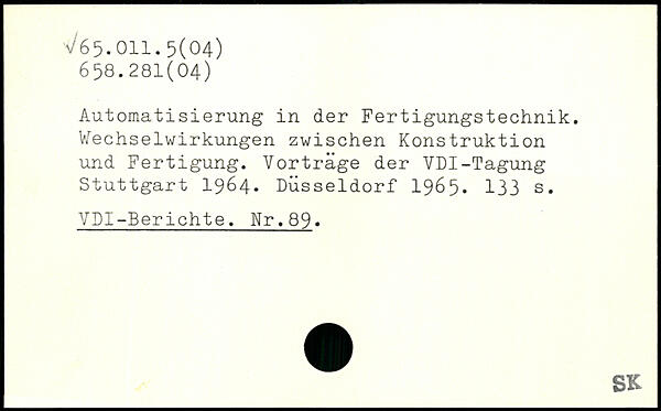 Automatisierung in der Fertigungstechnik. Wechselwirkungen zwischen Konstruktion und Fertigung. Vorträge der VDI-Tagung