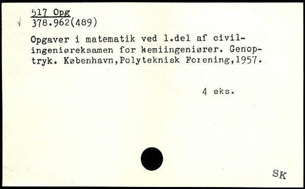 Opgaver i matematik ved l.del af civilingeniøreksamen for kemiingeniører. Genoptryk.