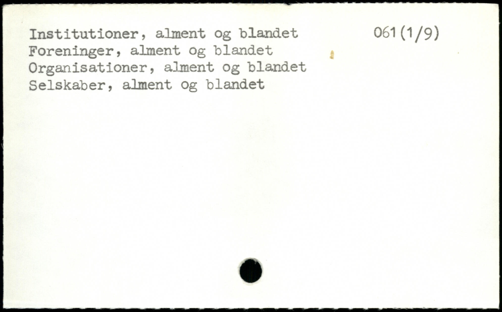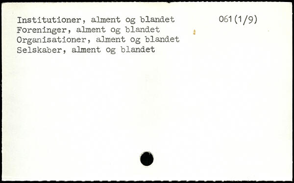 Institutioner, alment og blandet 061(1/9) Foreninger, alment og blandet Organisationer, alment og blandet Selskaber, alment og blandet