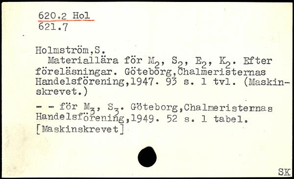 Materiallära för Mg, Sp, Eg, Kg. Efter föreläsningar.