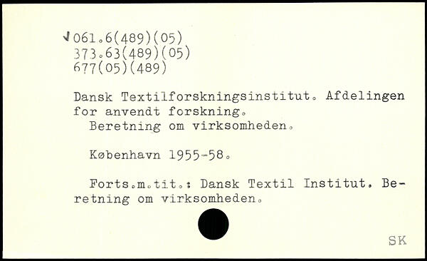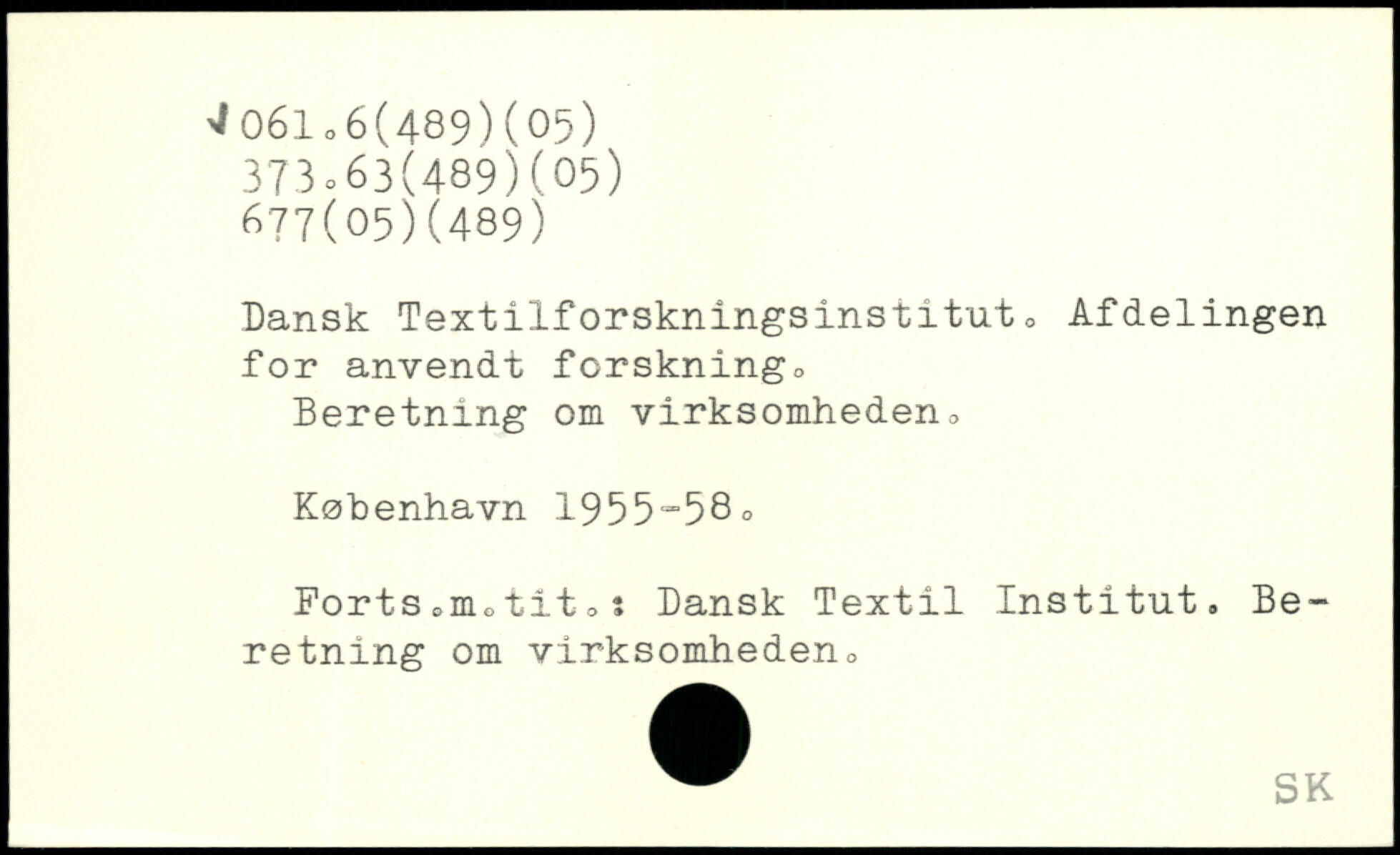 Dansk Textilforskningsinstitut. Afdelingen for anvendt forskningo Beretning om virksomhedeno