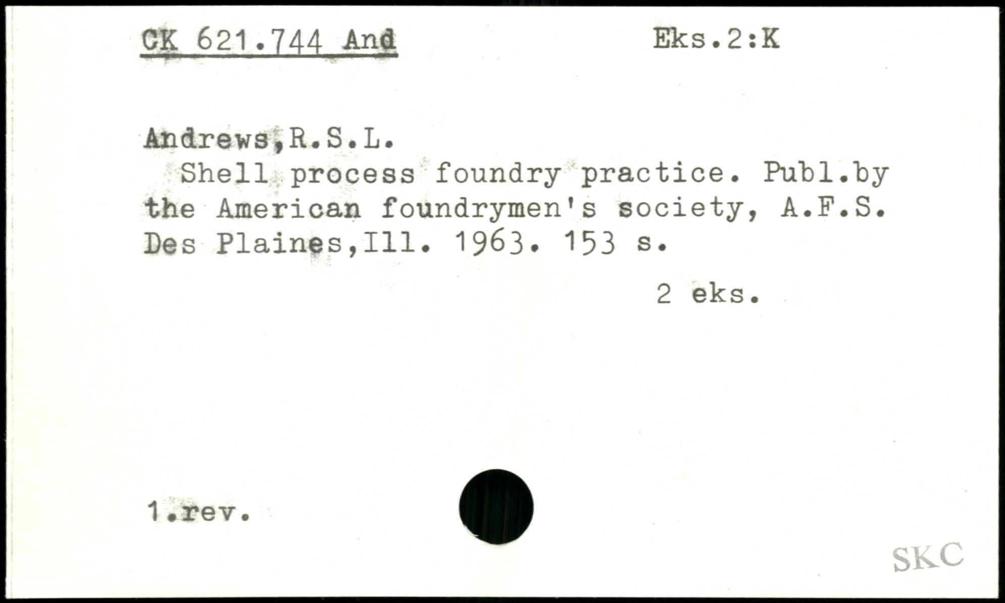 Shell process foundry practice. Publ.hy the American foundrymen’s society, A.F.S. Les Plaines,111. 1963.