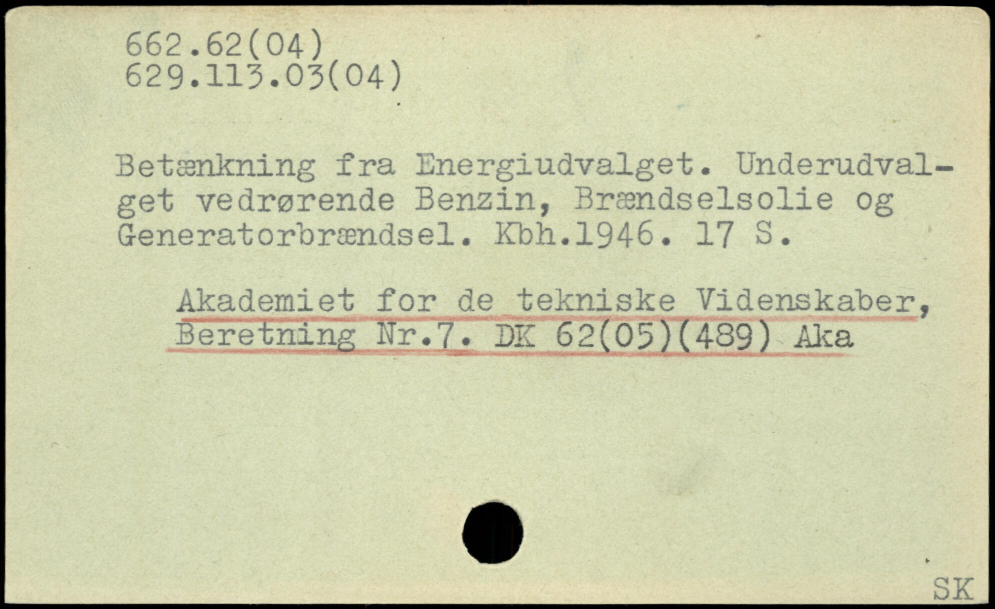 Betænkning fra Energiudvalget. Underudvalget vedrørende Benzin, Brændselsolie og Generatorbrændsel. Kbh.1946.