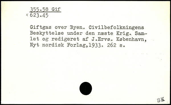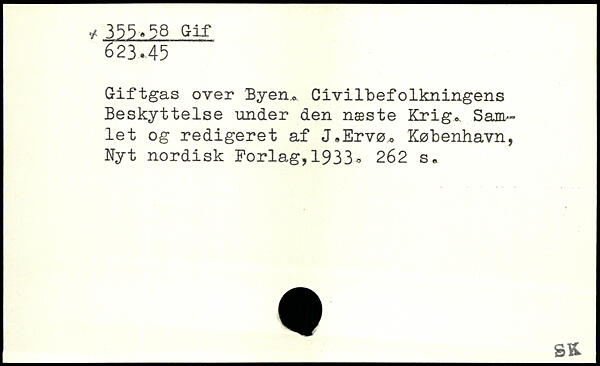 Giftgas over Byen., Civilbefolkningens Beskyttelse under den næste Krig. Sam, let og redigeret af J.Ervø.