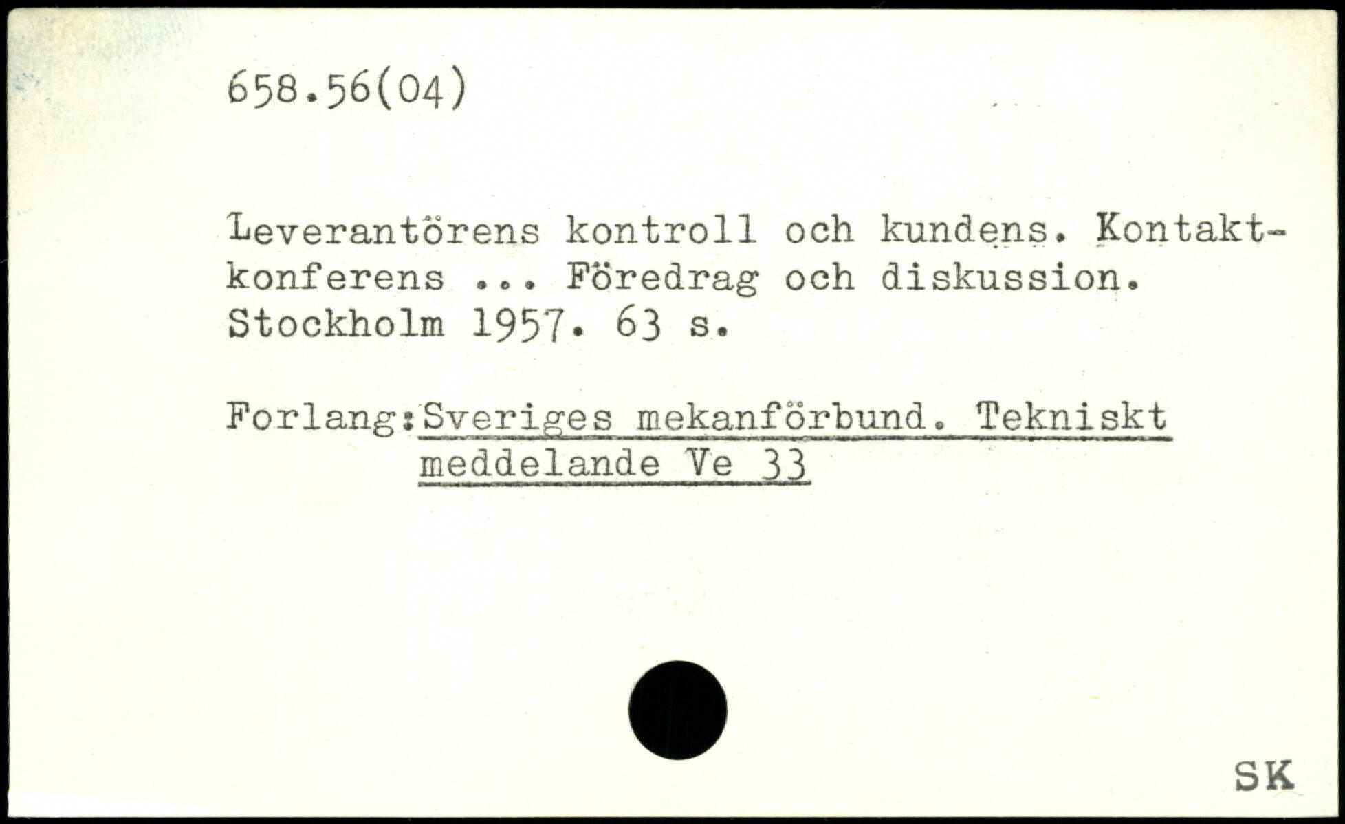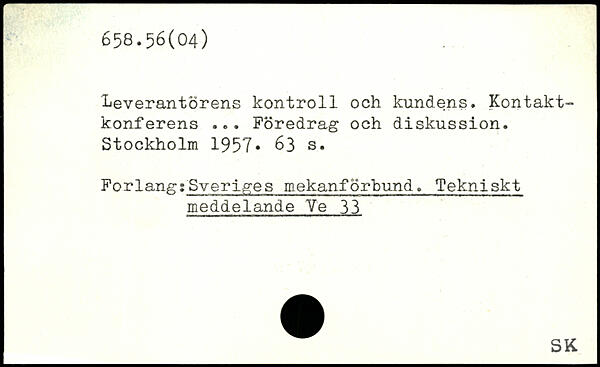 leverantörens kontroll och kundens. Kontaktkonferens ... Föredrag och diskussion.