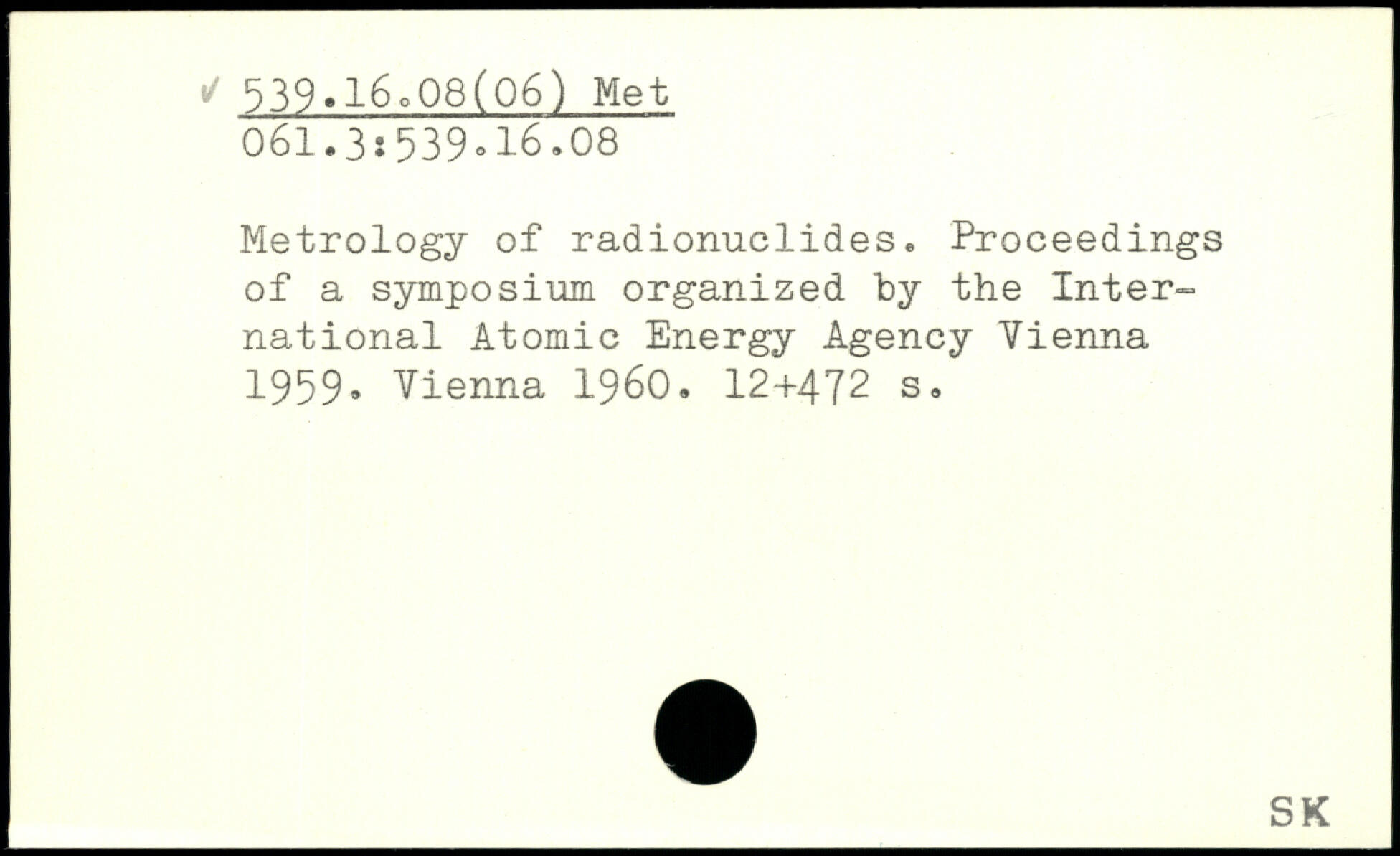 Metrology of radionuclides. Proceedings of a symposium organized by the Inter, national Atomic Energy Agency Vienna 1959- Vienna 1960.