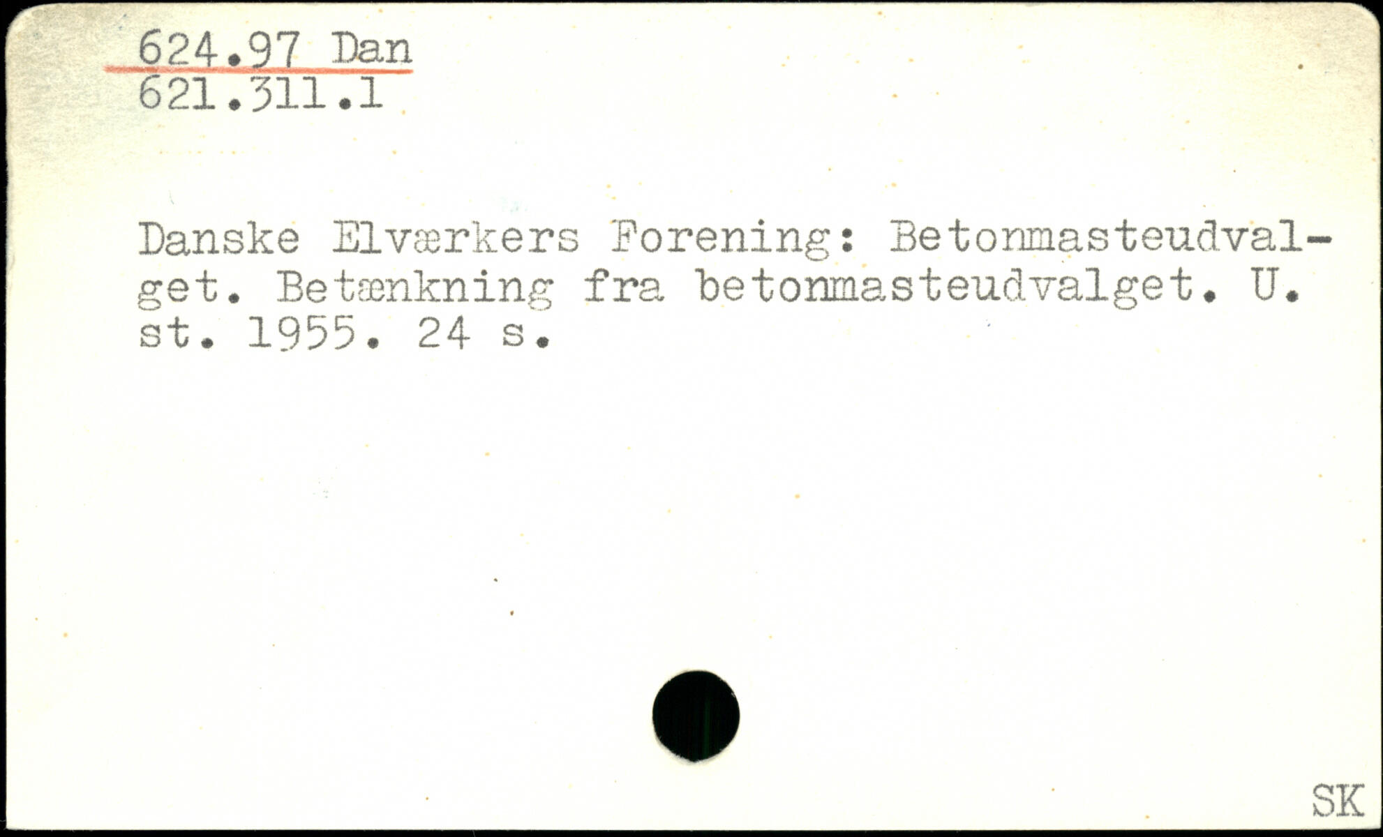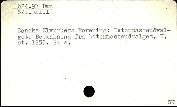 Danske Elværkers Forening: Betonmasteudval-get. Betænkning fra betonmasteudvalget. U. st. 1955.