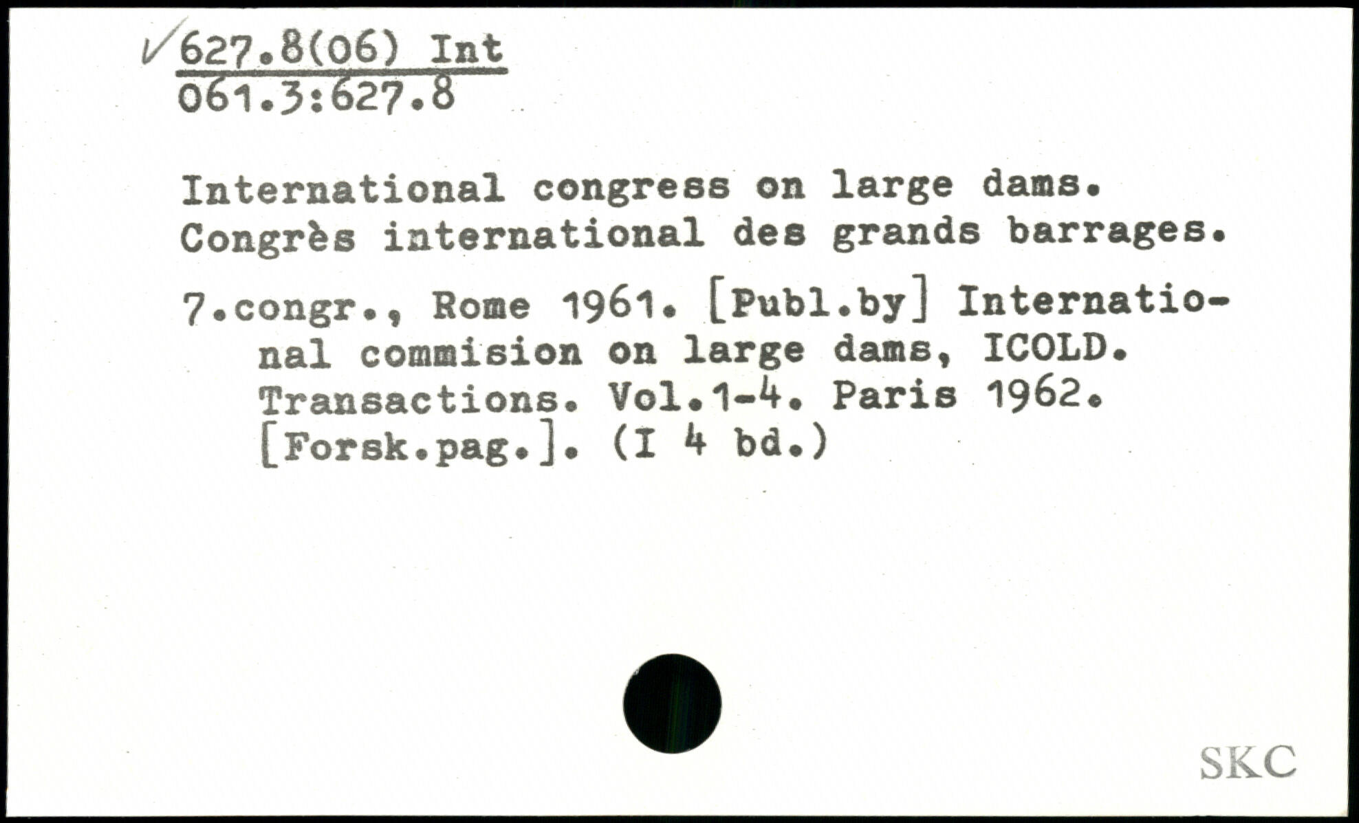 International congress on large dams. Congrès international des grands barrages. 7.congr., Rome 1961.