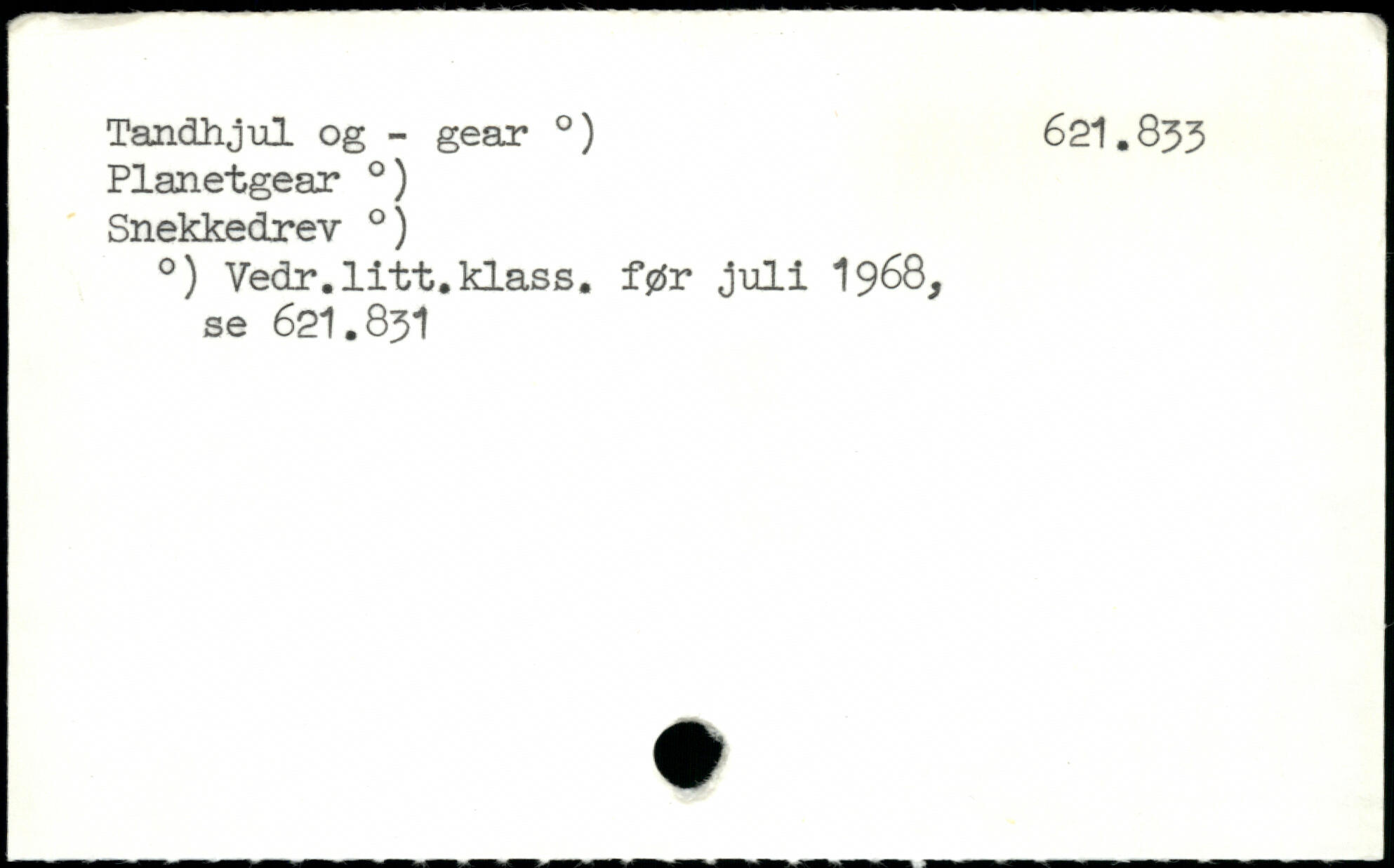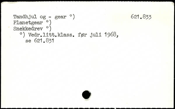 Planetgear .) Snekkedrev .) .) Vedr.litt.klass. før juli 1968, se 621.831
