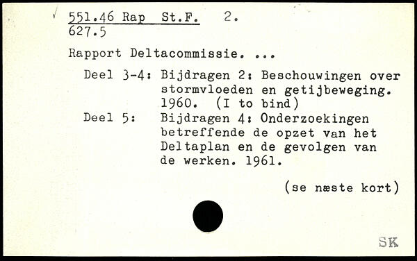 Rapport Deltacommissie. ... Deel 3-4. Bijdragen 2: Beschouwingen over stormvloeden en getijbeveging. 1960. (i to bind) Deel 5: Bijdragen 4. Onderzoekingen betreffende de opzet van het Deltaplan en de gevolgen van de werken. 1961.