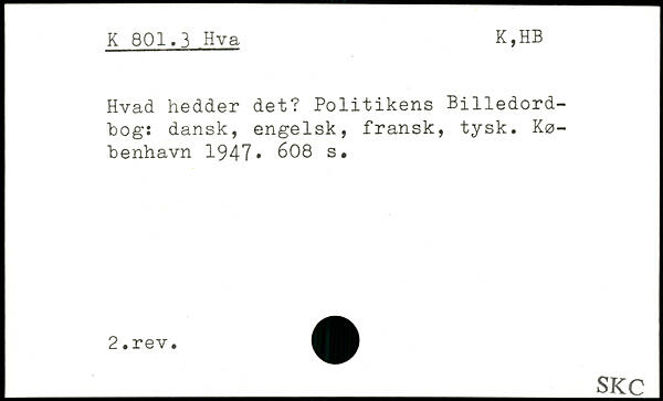 Hvad hedder det? Politikens Billedord-bog: dansk, engelsk, fransk, tysk.