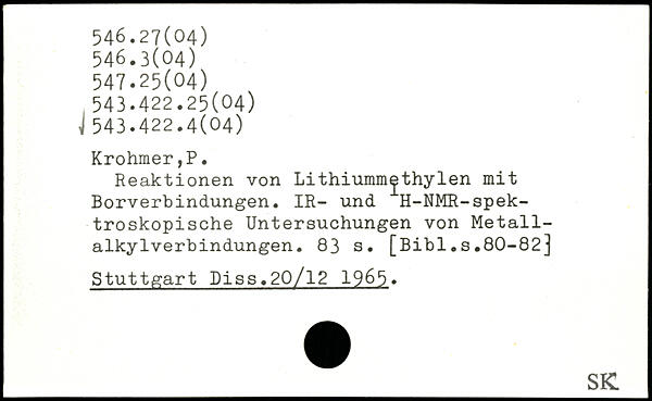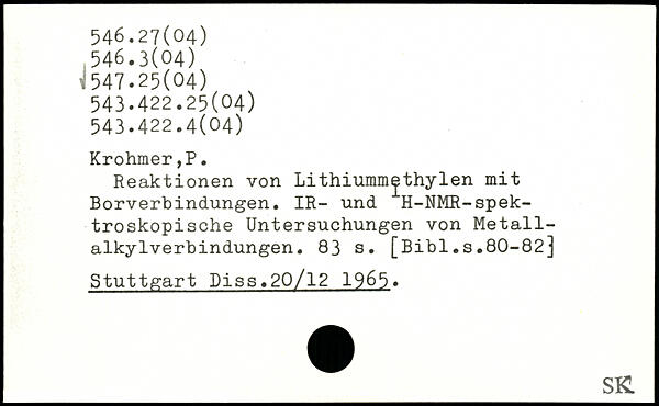 Reaktionen von Lithiumm^thylen mit Borverbindungen. IR- und H-NMR-spek-troskopische Untersuchungen von Metallalkylverbindungen.
