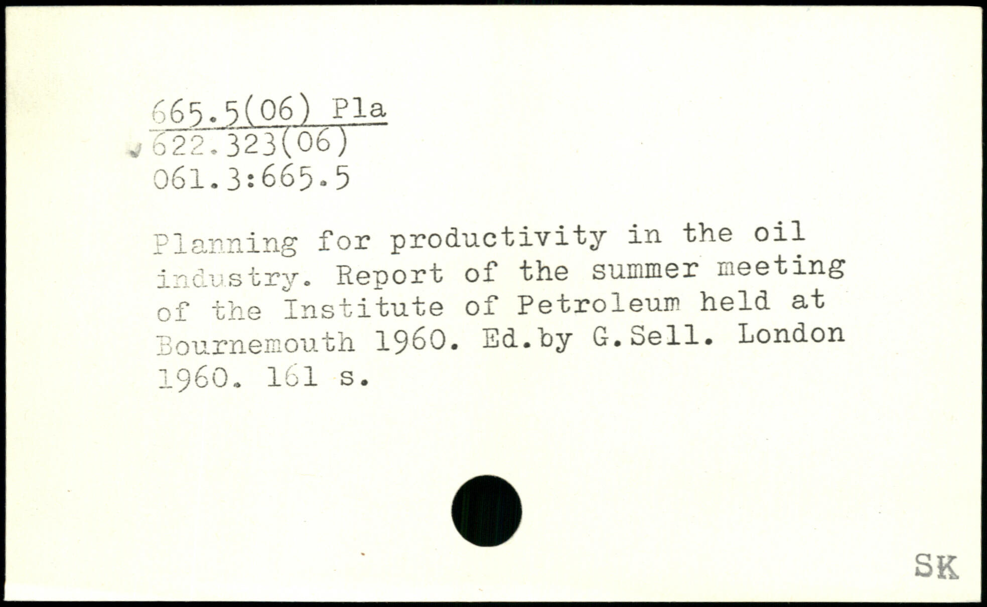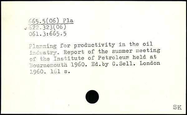 Planning fon productivity in the oil industry. Report of the summor meeting of the Institute of Petroleum held at Bournemouth 1960, md.hy G.bell.