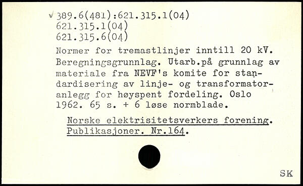 Normer for tremastlinjer inntill 20 kV. Beregningsgrunnlag. Utarb.på grunnlag av materiale fra NEVF