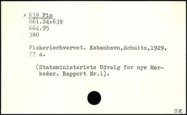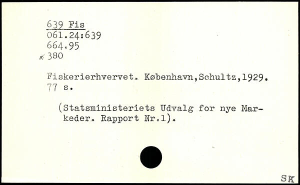 Fiskerierhvervet, København,Schultz,1929. 77 s. (Statsministeriets Udvalg for nye Markeder.. Rapport Rr.l).