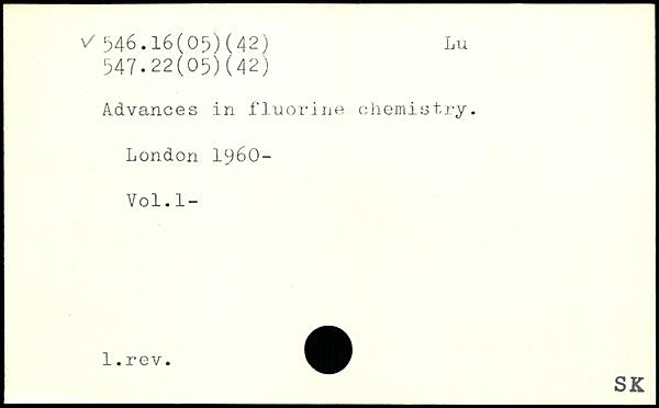 Advances in fluorine chemistry.