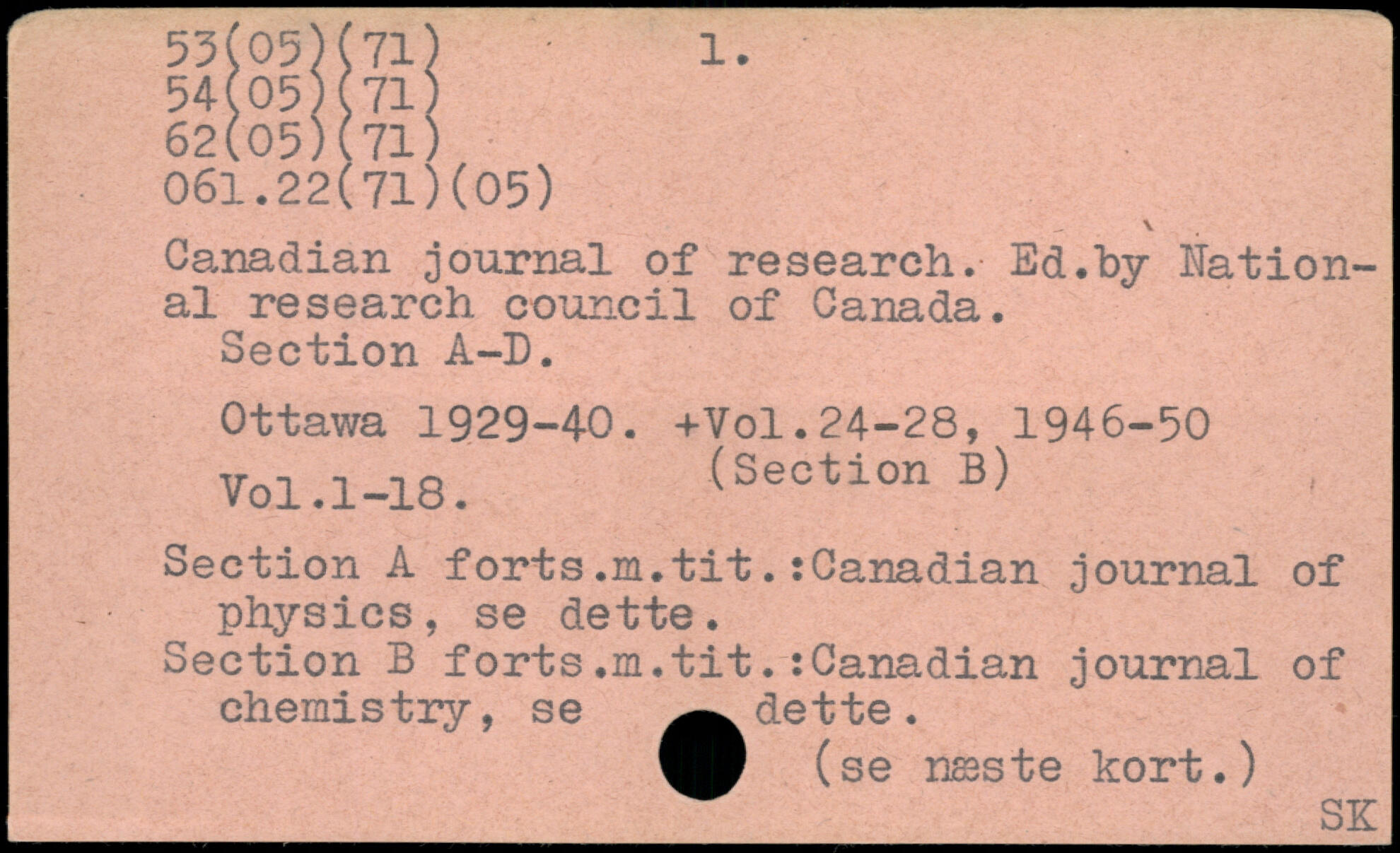 Canadian journal of research. Ed. by National research council of Canada. Section A-D.