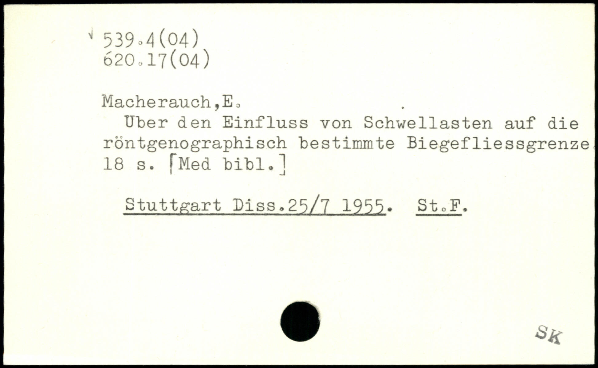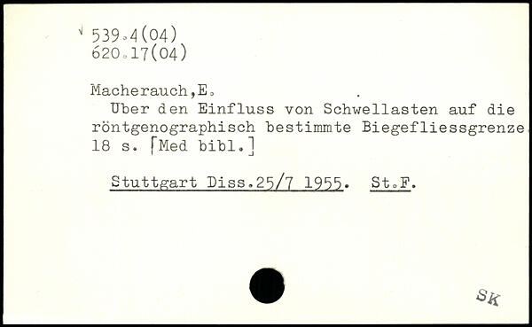 Uher den Einfluss von Schwellasten auf die röntgenographisch bestimmte Biegefliessgrenze