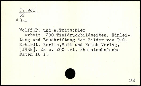 Arbeit. 200 Tiefdruckbildseiten. Einleitung und Beschriftung der Bilder von P.G. Erhardt. Berlin,Volk und Reich Verlag, [l93ö].